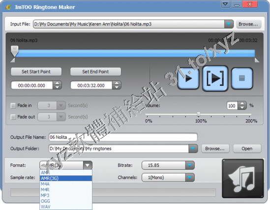 ImTOO Ringtone Maker, making mobile ringtones from