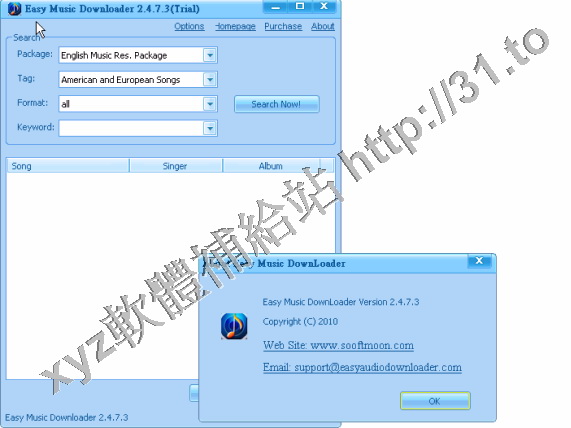 SooftMoon Easy Music Downloader v2.5.8.3 英文正式版(可以通過網路搜集全世界的音樂並下載到個人電腦上的軟體)