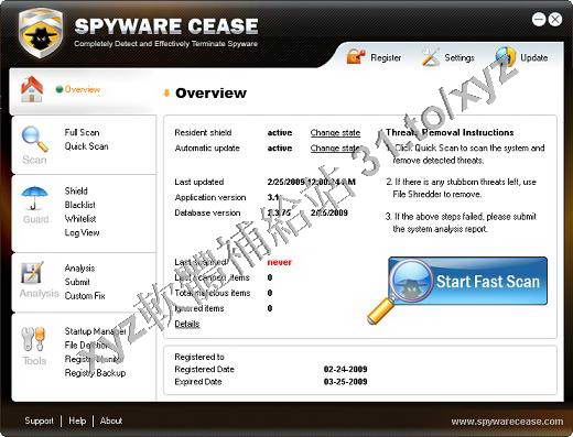 Spyware Cease v6.3.0 英文正式版(防間諜軟體)
